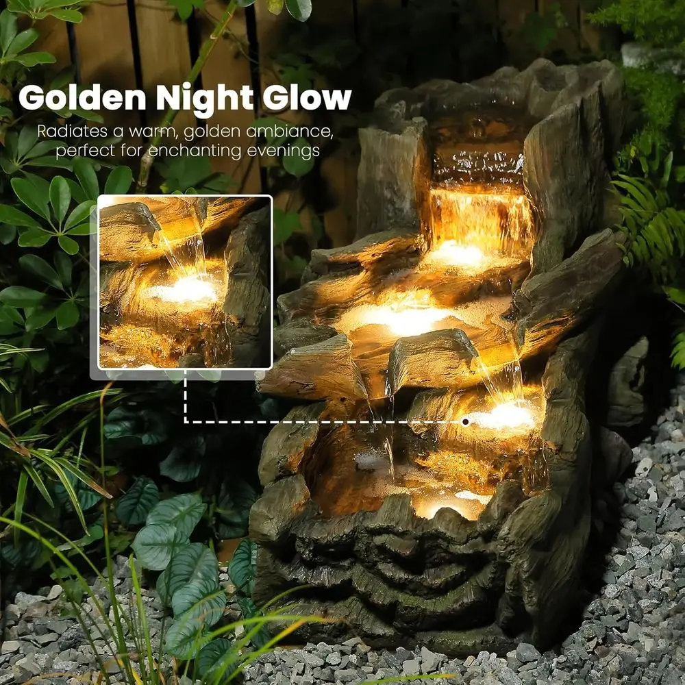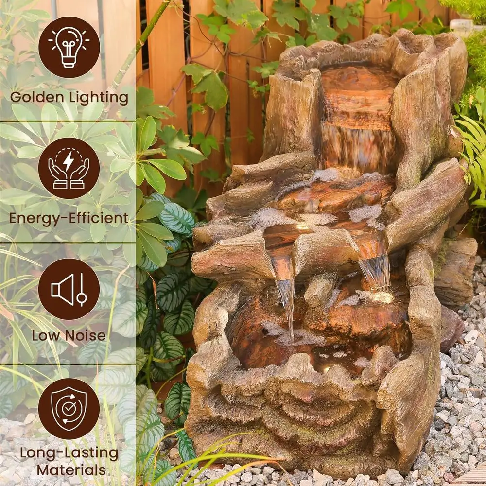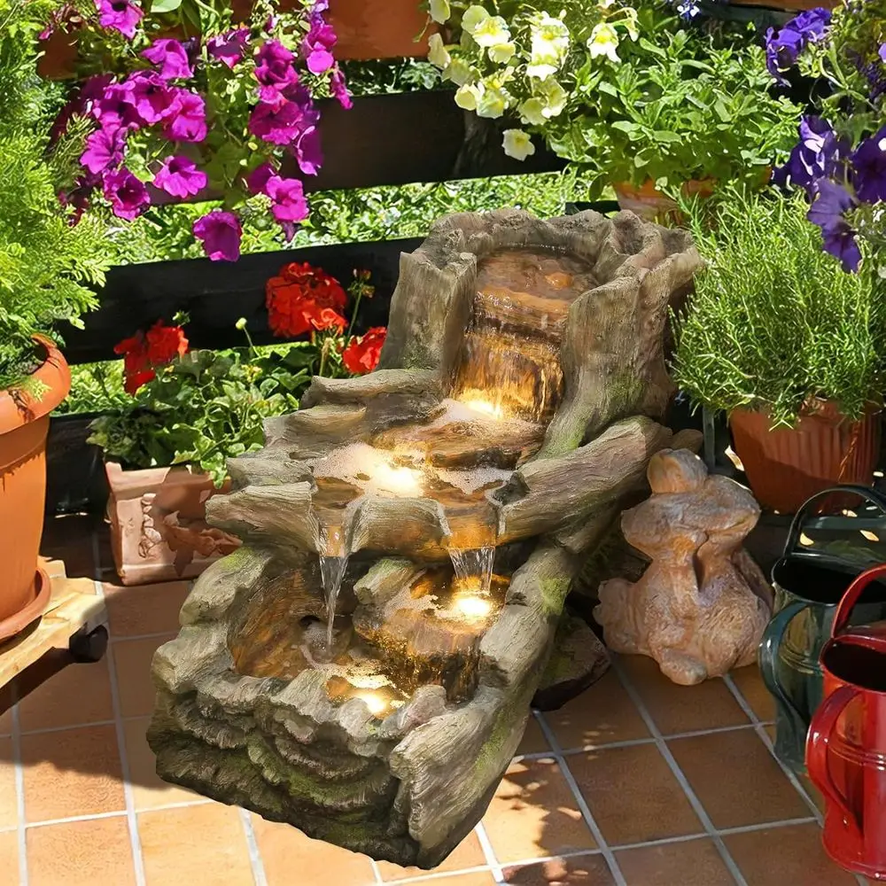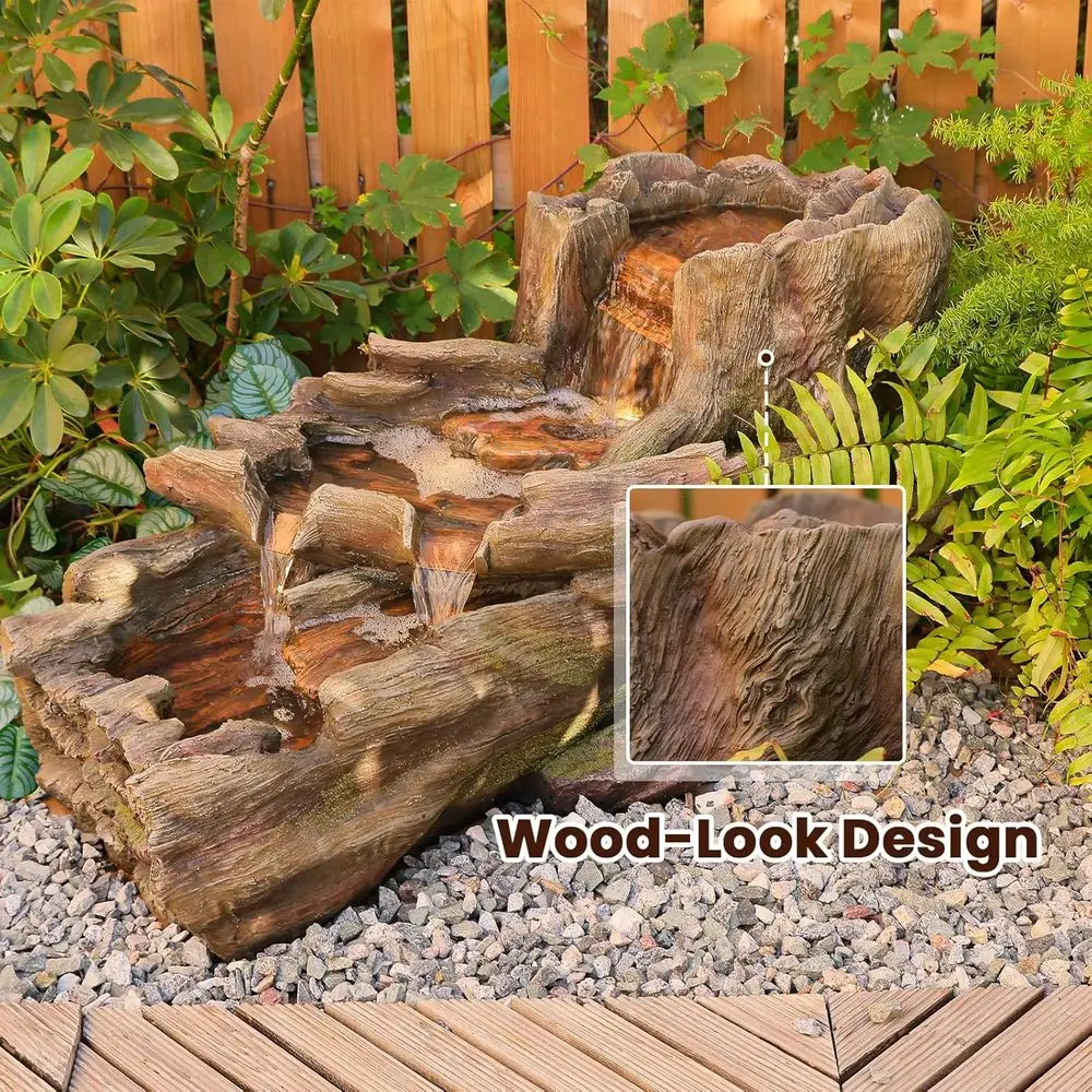 3-Tier Cascading Tree Trunk Water Fountain